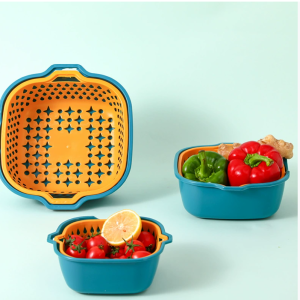加厚家用双层塑料沥水篮六件套八件套创意厨房多层特大滴水洗菜篮
