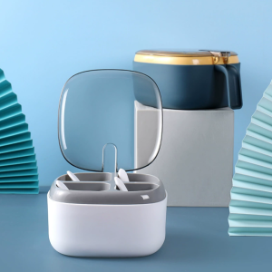 四格调料盒厨房用品撞色透明盖子带勺子按压式调味盒放盐味精佐料
